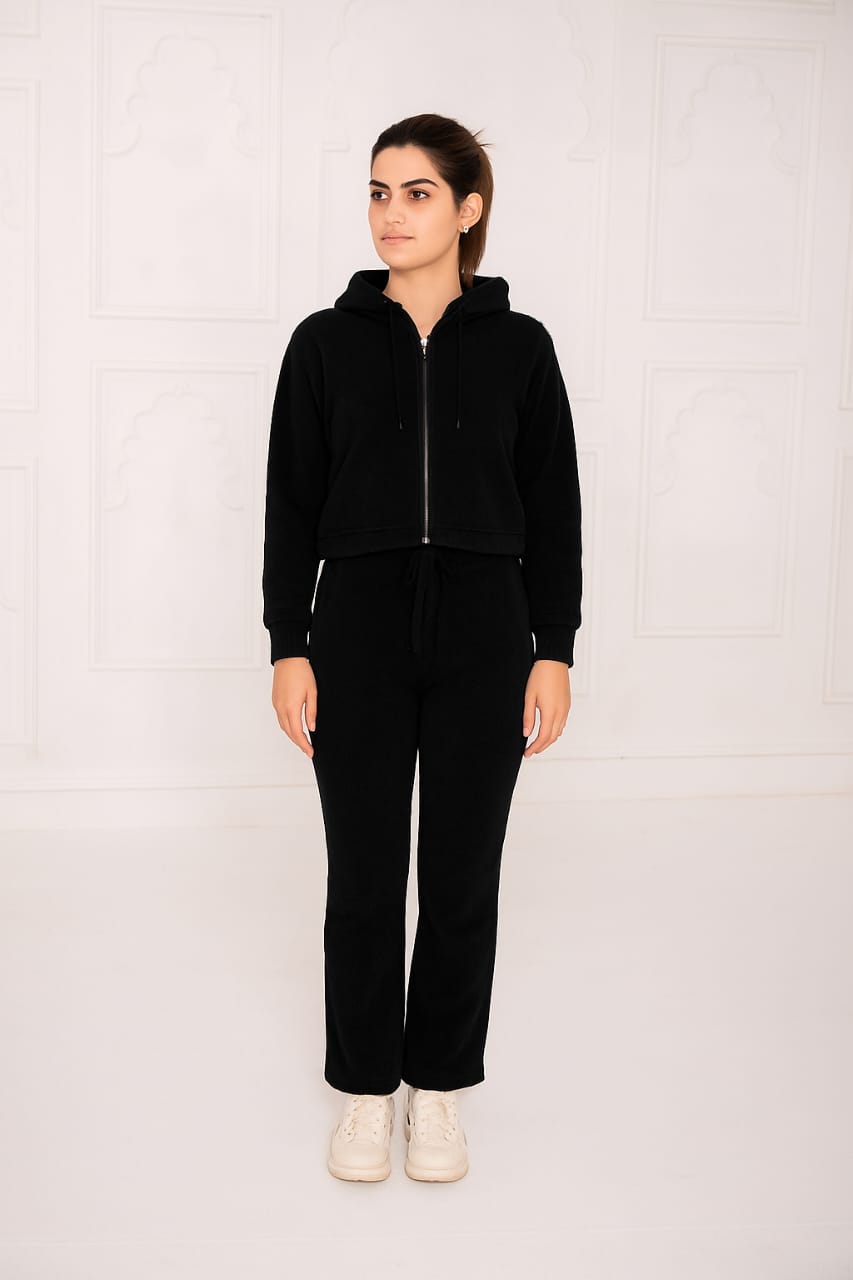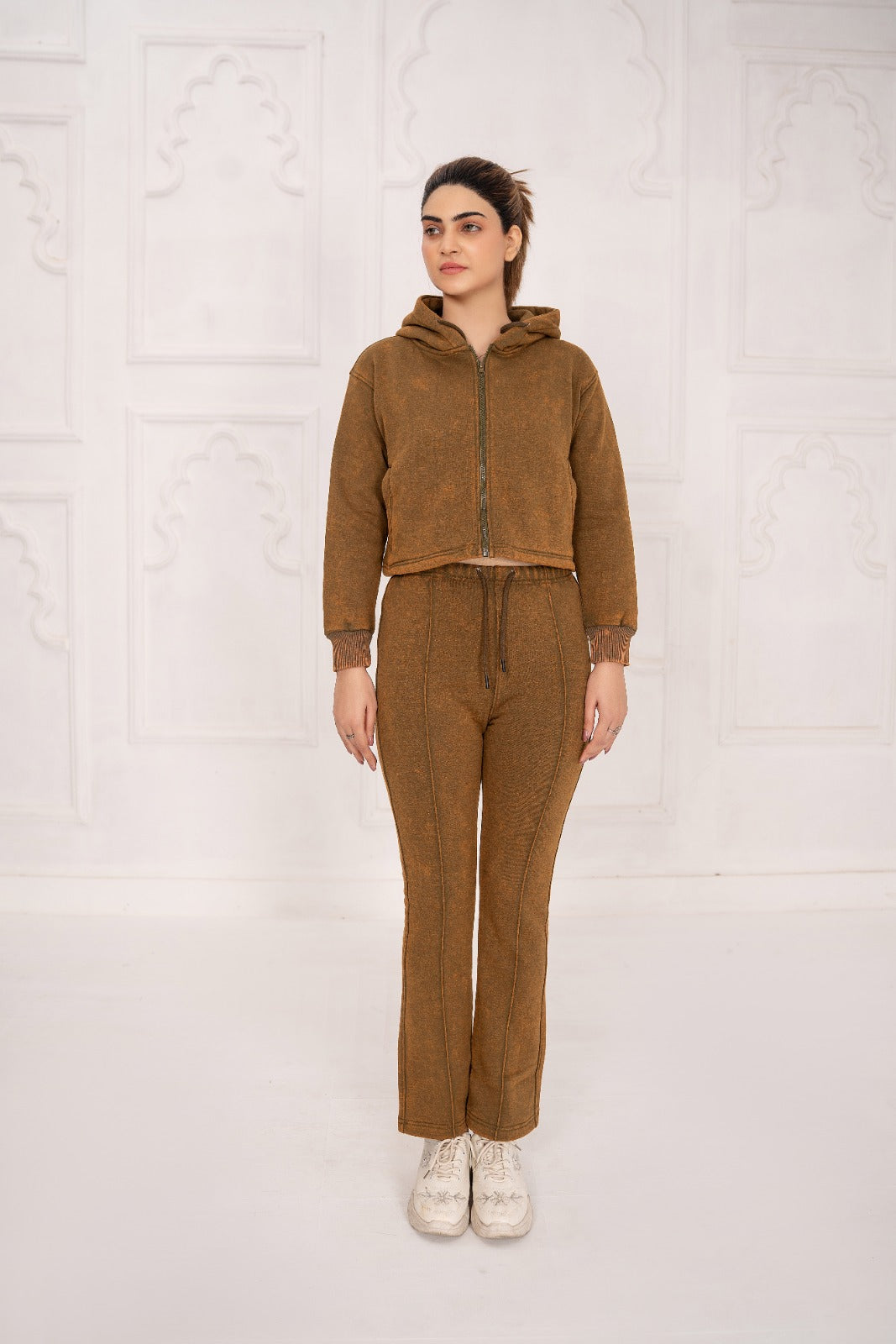 Fleece Acid Wash Crop Hoodie Suit
